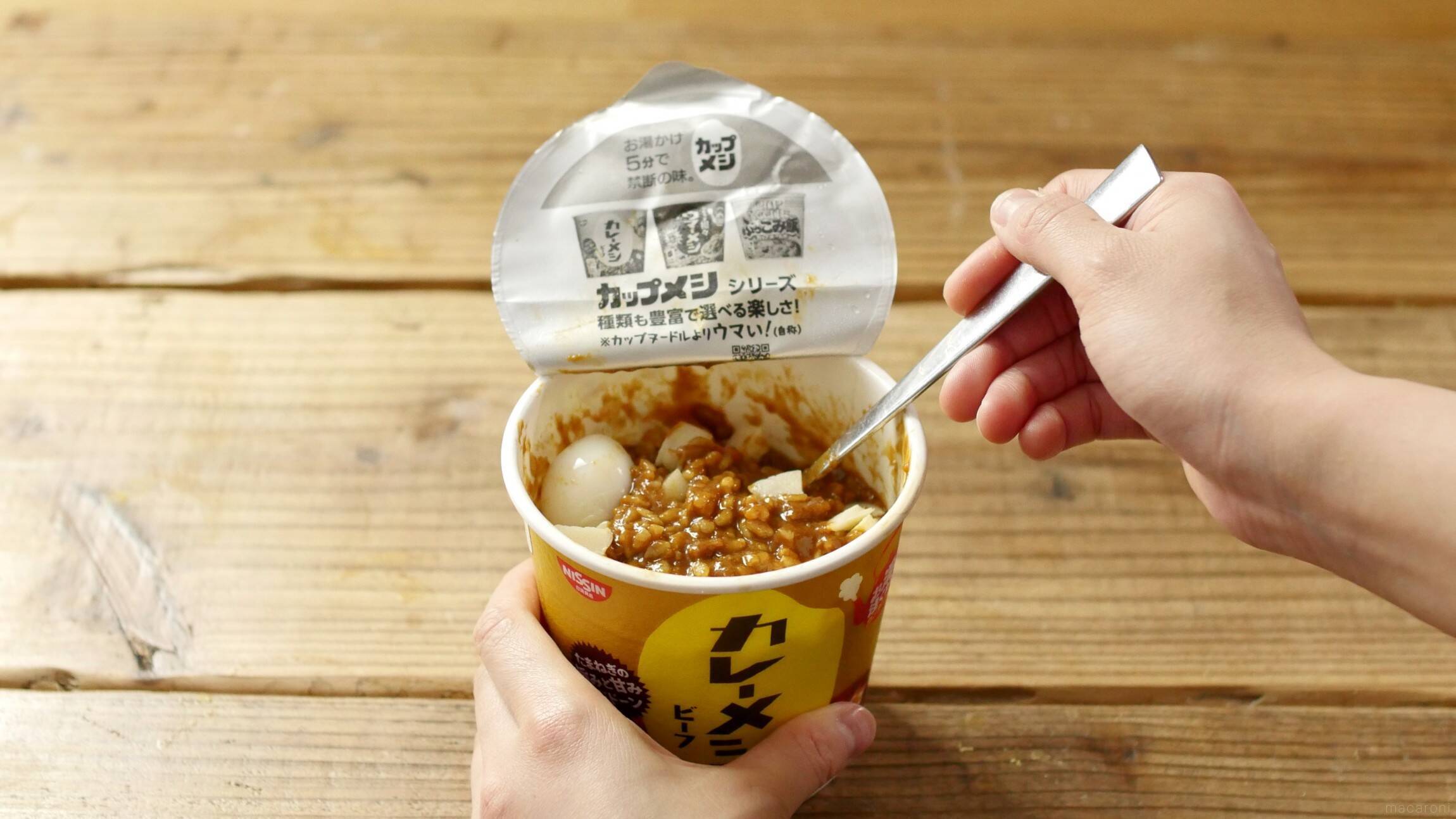 May 18, 17 · 「カレーメシ」、コンビニでよく見かけます! 会社のデスクで食べている人も多いですよね? カップでカレー? とちょっと不思議に思ってました。 そして数日前、渋谷に、「カレーメシ」にコーヒーとかをドリップして食べるカフェがあるって噂を聞いたんですよ。Jun 26, · お湯で簡単調理ができるカレーメシ。登山にぴったりなのはもちろん、ルゥにもこだわっていてその美味しさからファンが多いんです!さらに美味しく食べるためのアレンジトッピングや、パッキングする際の裏ワザをご紹介!あなたも山カレーメシデビューしませんか?カレーメシのアレンジ法 カレーメシをより美味しく食べるためのアレンジ法です。 トッピングをする 1ミックスチーズやパルメザンチーズをカレーメシにのせて食べます。 のせただけでもいいですが、かき混ぜて溶かして食べるとより美味しいです。